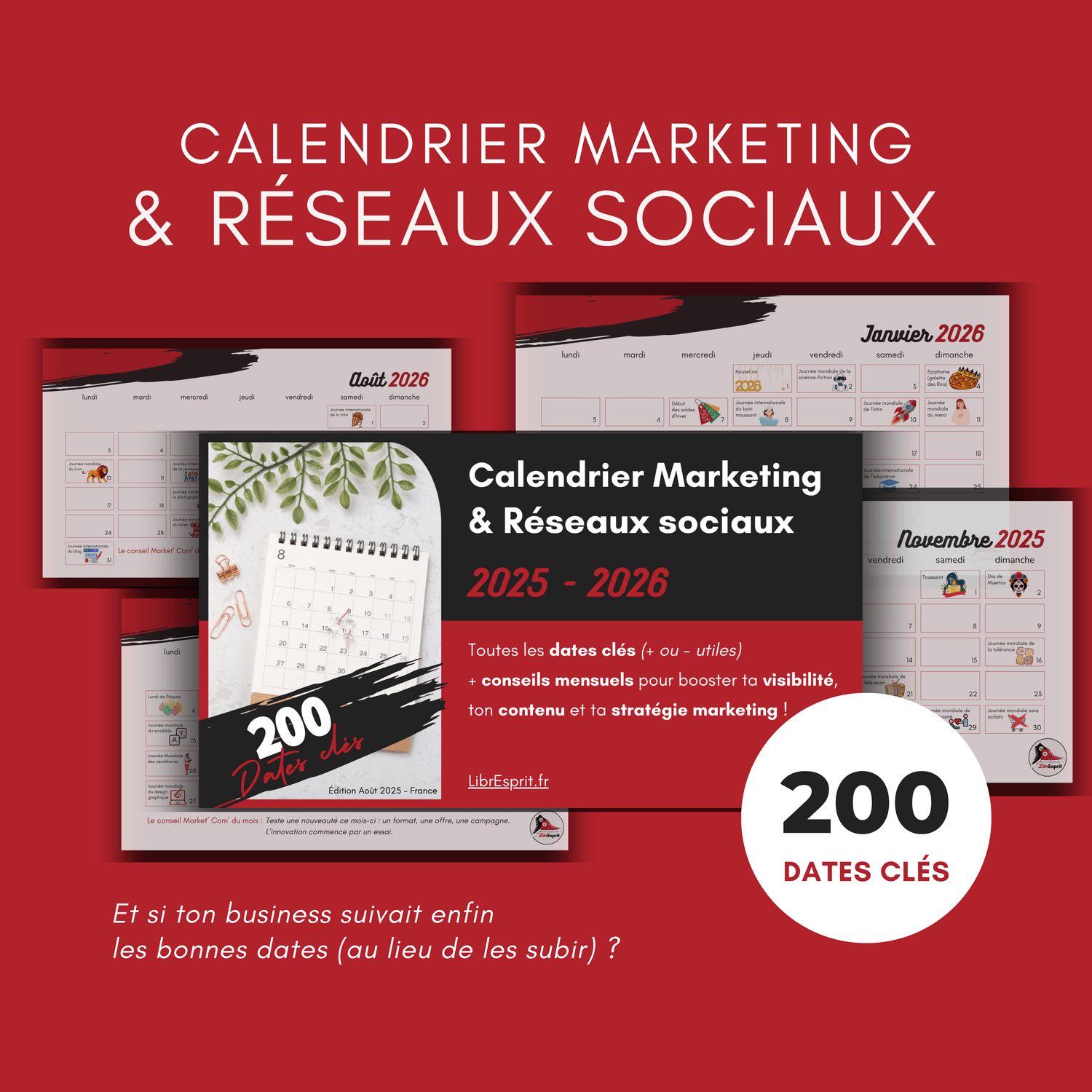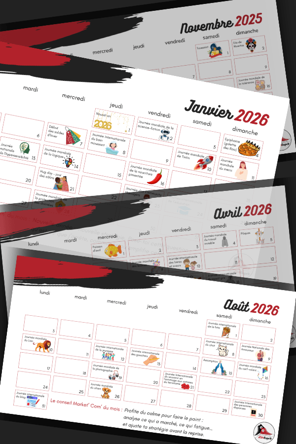 Toutes les dates importantes (et moins importantes 😏) + des conseils stratégiques pour planifier facilement ton contenu pendant 12 mois.